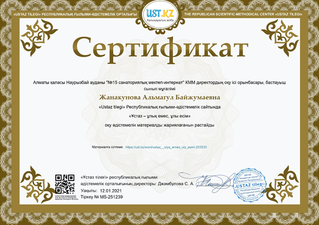 Сайт туралы Ustaz tilegi сайтына кіріп, видеонұсқаулықты көріп толық танысуға болады. Сайтқа тіркеле отырып өзіңізге қажетті материалды таба алатыныңызға сенімдімін. Ustaz tilegi – Республикалық ұстаздар сайтына тіркелу мүмкіндігін жіберіп алмаңыз.