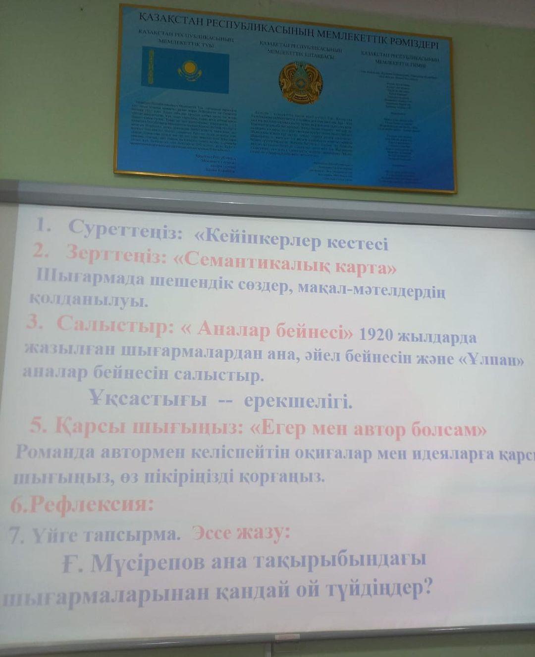 Оқушылар ,Ұлпан' романын қызыға оқып, Ұлпан образын жан-жақты талдап , салыстырып шығармадағы шешендік сөздердің қолданылуына мән беріп, кейіпкерлерге талдау жасады.,,Егер мен автор болсам.." ойларын бөлісті, қарсы пікірлерін айтты.