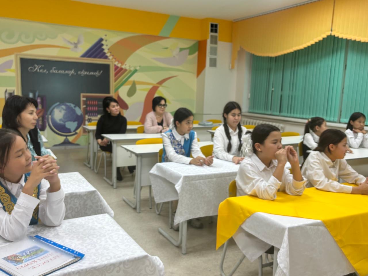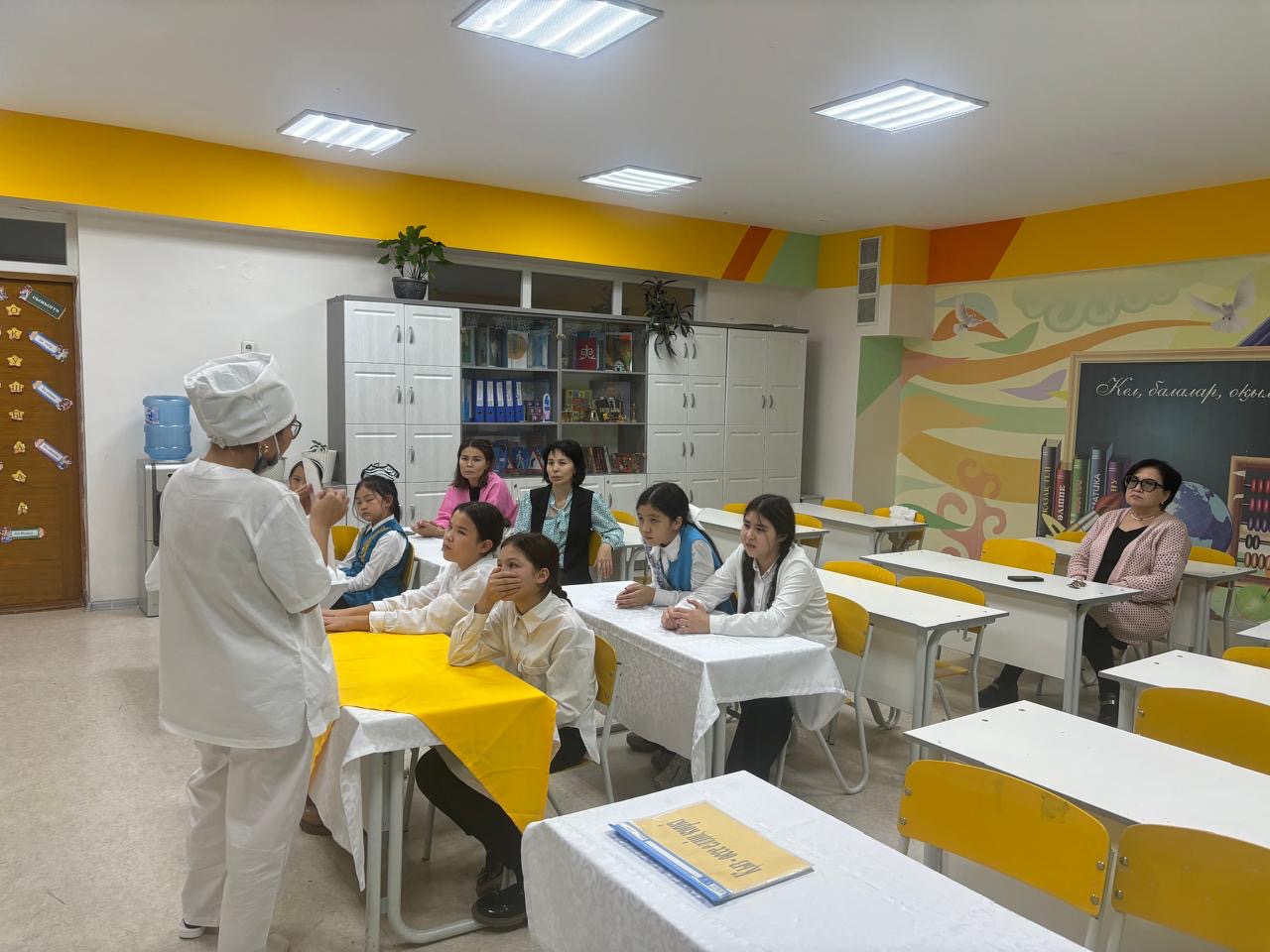 – оқушылардың ойлау, есте сақтау, танымдық қасиеттерін дамыту. Мектеп медбикесі Тұрсынова Баян тазалық жайлы ақпарат берді. Мектеп директорының тәрбие ісі жөніндегі орынбасары Тыныбек Айдана Таңатарқызы қыз балалардың тәрбиесі жөнінде сөз қозғап, мектеп-интернат психологы Сапарова Қазына мен тәлімгер Саменова Асия қыздармен ойын-жаттығуларын жүргізді.