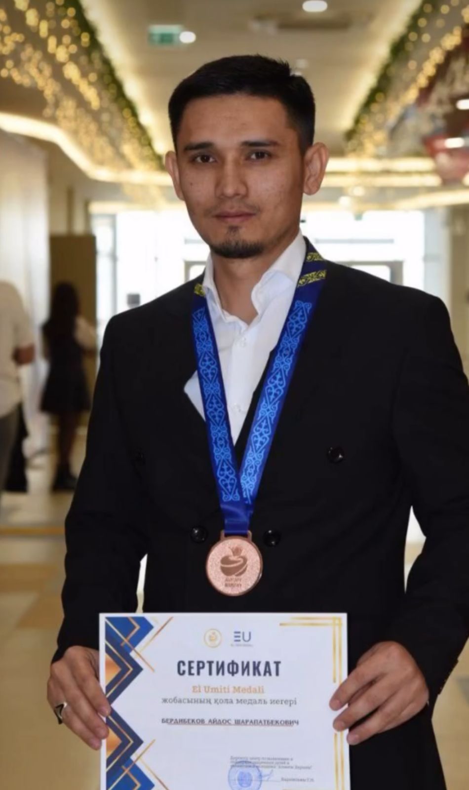 “El Úmiti” медаль жобасы аясында еліміздің жас ұрпағын тәрбиелеуге, білім беру ісіне қосқан елеулі үлесі үшінБердібеков Айдос Шарапатбекұлықола медальмен марапатталды.