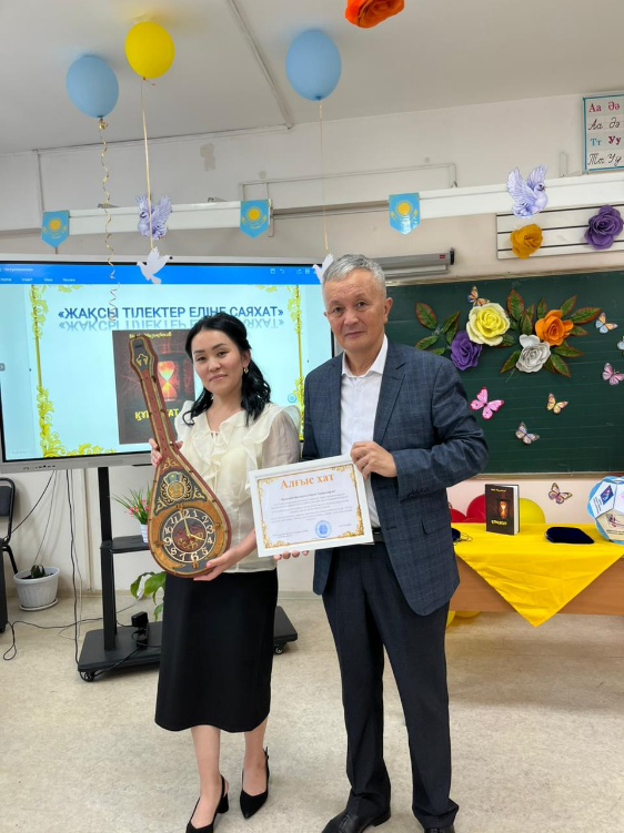 Белгілі қоғам қайраткері Бірлік Сапарғалиұлы Жазықбековпен тағылымды сұхбат-сабақ ұйымдастырылды. Қонағымыз өз өмір жолындағы естеліктерімен бөлісіп, кәсіби тәжірибесінің маңызды тұстарын әрбір оқушыға түсінікті тілмен жеткізді. Жазықбеков мырза табандылық, жауапкершілік пен шығармашылықтың рөлі туралы ой қозғап, болашаққа деген сенімділік пен мақсат қоюдың әдістерін ұсынды. Сонымен қатар, ол студенттік және жас мамандық жолындағы қиындықтарды қалай жеңу керектігіне қатысты өз кеңестері мен практикалық ұсыныстарымен бөлісті. Сұхбат соңында оқушылар белсенді сұрақтар қойып, қонағымызбен сапалы пікір алмасу арқылы әрі қарай даму жолдарына қажетті жаңа идеялар алды.