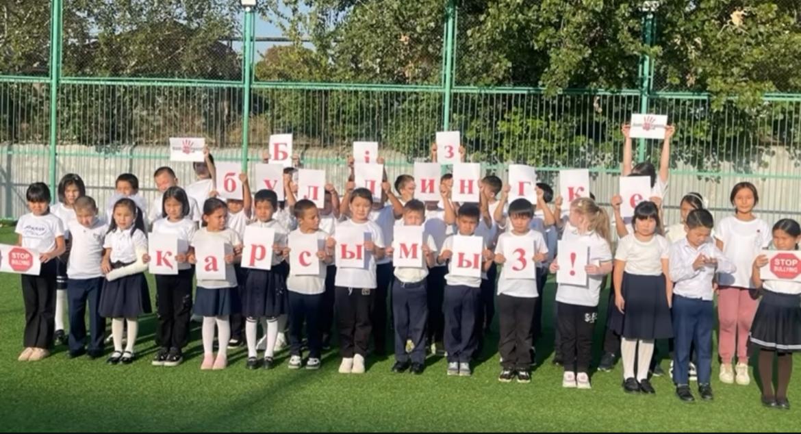 Бүгін мектеп ауласында біздің сынып оқушылары «Менің сыныбым буллингке қарсы!» атты флешмоб ұйымдастырды. Іс-шараның мақсаты — оқушылар арасында бірлікті, достықты, сыйластықты насихаттап, мектепте жылы да қауіпсіз орта қалыптастыру.Оқушылар «Буллингке — ЖОҚ! Достыққа — ИӘ!» деген ұранды көтеріп, өздерінің бейбітшілік пен сыйластықты қолдайтынын көрсетті.