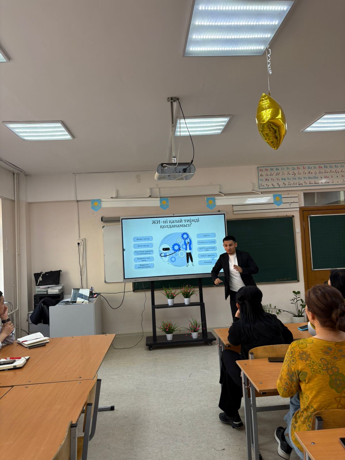 Проведён мастер-класс на тему: «Взаимодействие между учителем и искусственным интеллектом».В ходе занятия были подробно рассмотрены вопросы взаимодействия педагога с искусственным интеллектом, эффективного использования ИИ-инструментов в учебном процессе, а также возможности повышения познавательной активности обучающихся.Мастер-класс провёл учитель истории Бердибеков Айдос Шарапатбекулы.