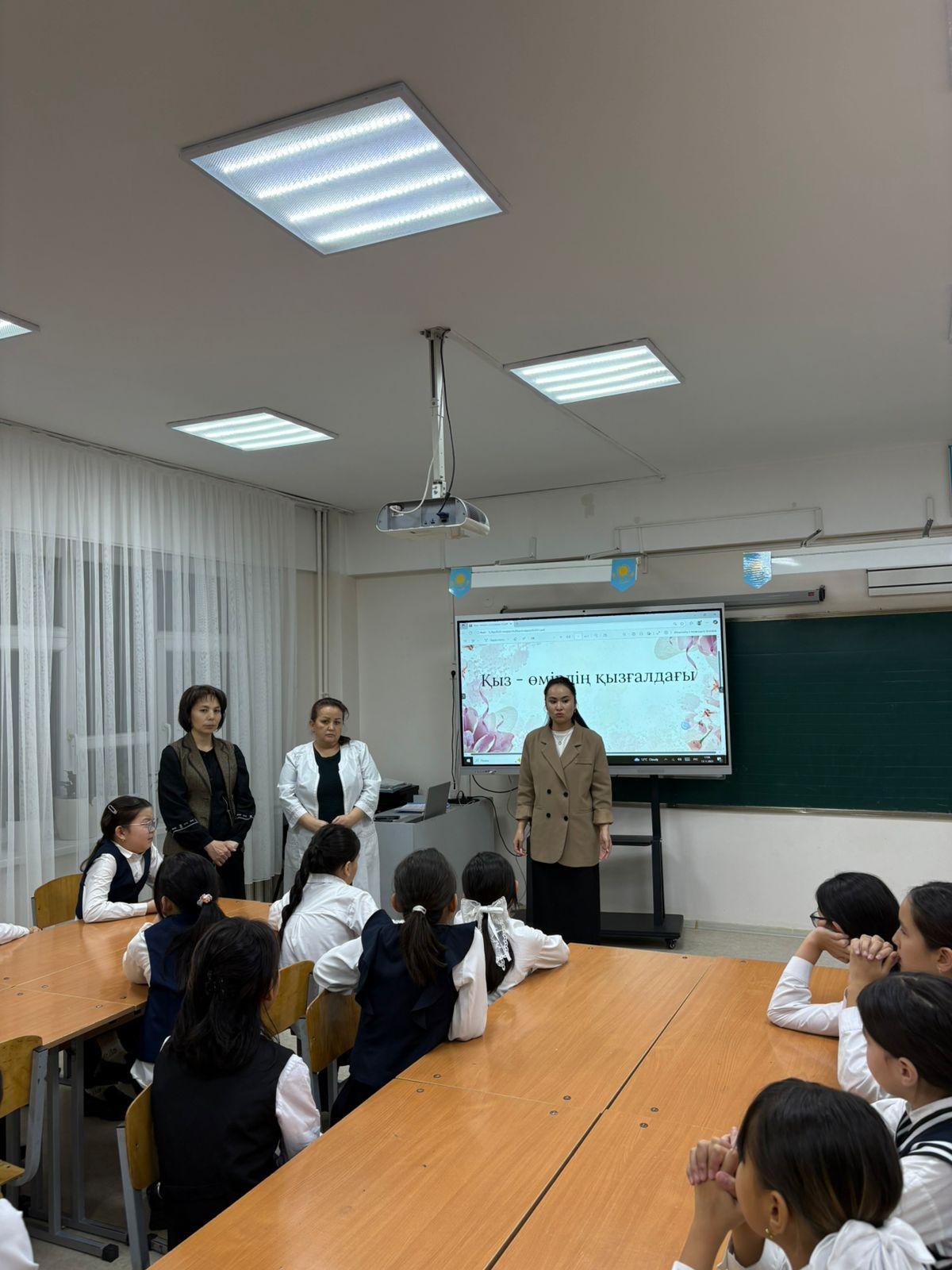 Бүгін мектебімізде «Қыз – өмірдің қызғалдағы» тақырыбында қыздар жиналысы өтті. Іс-шара барысында қыздар өз құқықтары мен міндеттері, денсаулық және рухани дамудың маңызы, сондай-ақ салауатты өмір салты туралы мағлұмат алды.