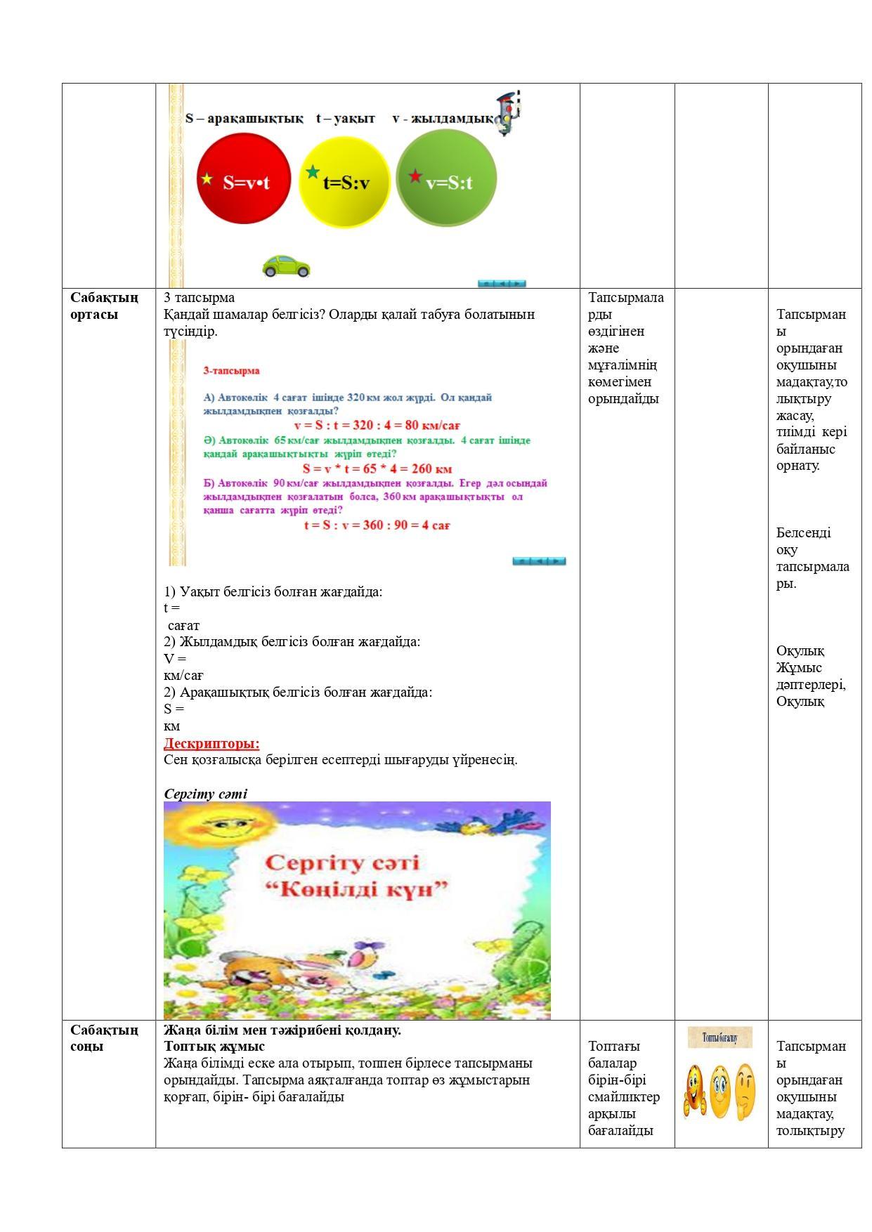 Сабақтың мақсаты: 4.2.1.8. Бірқалыпты түзу сызықты қозғалыстағы арақашықтық формулаларын көрсету және қолдану ( s=v•t, t=s:v, v=s:t)