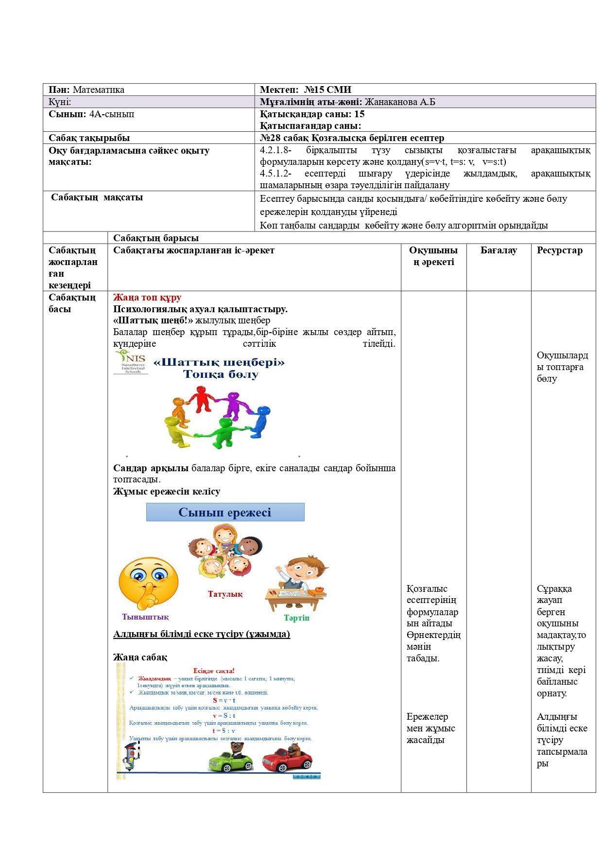 Бөлім: Жылдамдық. Уақыт. Арақашықтық.