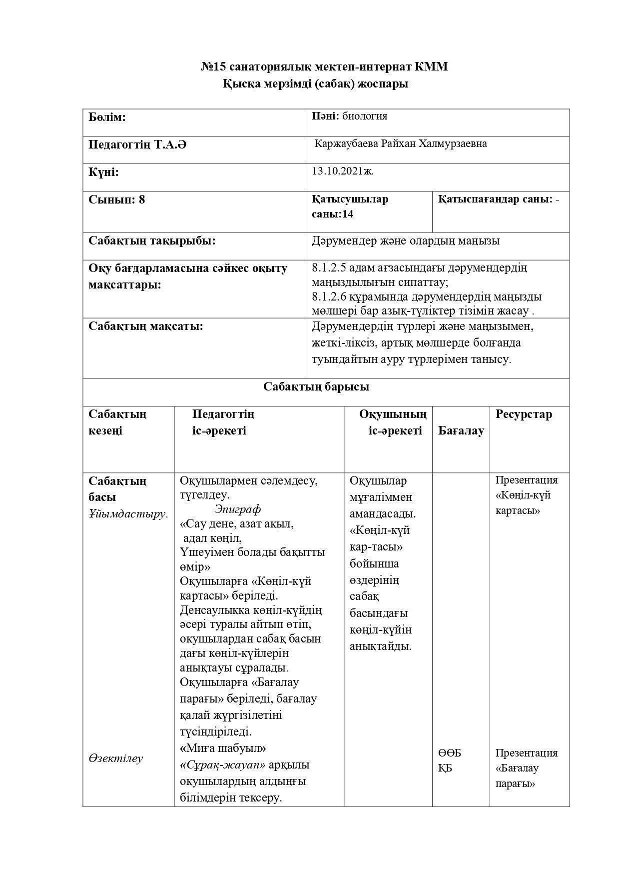 Күтілетін нәтиже:Ағылшын тілінде сауатты оқиды, жазады, етістіктермен жұмыс жасай алады, ағылшынша сөздерді анық айтады, ережені пайдалана отырып сөйлем құрастырады.