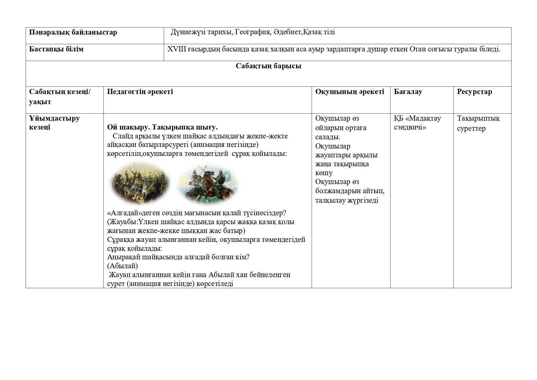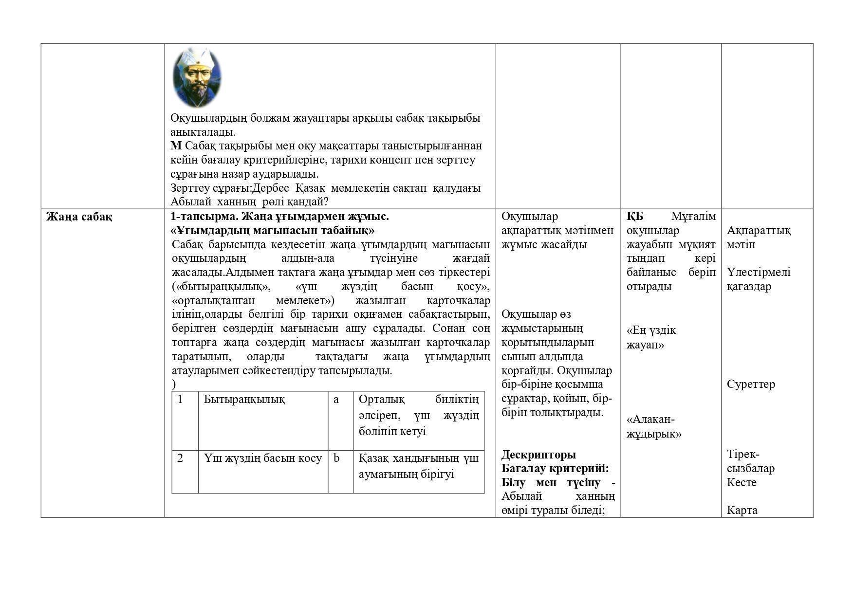 "Абылай ханның ішкі және сыртқы саясаты" тақырыбына ашық сабақ