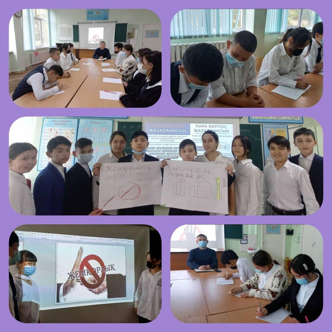 15 СМИ 8 сынып оқушыларымен Рухани — адамгершілік және азаматтық- патриоттық тәрбиелеу контекстінде сыбайлас жемқорлыққа қарсы мәдениетті мектеп ортасында қалыптастыру бағдарламасы бойынша " сыбайлас жемқорлыққа қарсы күрес жүргізу барлығымызға міндет " тақырыбына дебат өткізілді.