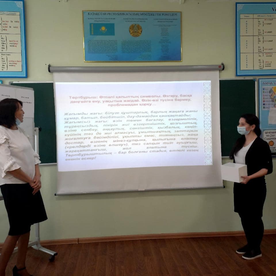 Мұғалім болып мектеп табалдырығын аттағаннан бастап өмір бойы білім алу, өмір бойы үйрену бұрынғыдан артпаса, кемімейді. Соның ішінде әріптестеріңнен үйрену, тәжірибе арқылы үйрену мықты құралың болады. Жоғарыда А.С.Макаренконың айтқанындай, жас маман болып мектебімізге келген мұғалімдерімізге педагогикалық та, психологиялық та, әдістемелік те қолдау көрсету сол ұжымның ішіндегі тәжірибелі ұстаздарға жүктелген аса жауапты міндет. Осы орайда, мектебімізде жас мамандар мен тәлімгерлер арасында « Жарқын болашақ иесі- бүгінгі жас маман» тақырыбында тренинг өтті.